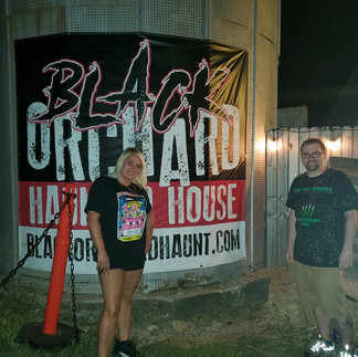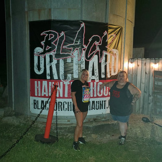 We now know "What is in the Barn!" and boy oh boy is it CRAZY!!! Props go out to the Cast for putting on a Good show for our Group's first visit to Black Orchard Meats. Meeting the Family made us Haunt Veterans feel right at Home! The Family Members we met along our Journey really made it known that we were trespassing on their territory and unless we wanted to be part of the Family we best be getting on our way. Upon entry to the Black Orchard Meats property we were greeted by a Gentleman known simply as the Man of Milk (Cody Rogers). This very odd, but yet friendly character zoned in on one of group members trying to recruit new members to join their Family as we made our trek just outside the Barn. As we rounded the corner we were greeted by the Famous Stich Black (Dakoda Bland), who we have heard tell about many times before our visit. Stich did a great job at giving us the back story of Black Orchard Meats and Welcomed us with open arms to meeting his Family and allowing us to Tour his facility. Each Character we encountered during our Journey fit very well within their Environment! One Character that stood out to us and gave our entire group a great startle was Junky Joe (Ronald Sammons) Kudos Sir! The Cast did a great job at giving us some startles here and there for sure. After making it out of Black Orchard Meats alive and in one piece, we were greeted by Cletus (Philip Davis), who wasn't too happy we had made it out alive. Cletus was so ready chop us to bits and feed us to the Birds, but we made it out thankfully!